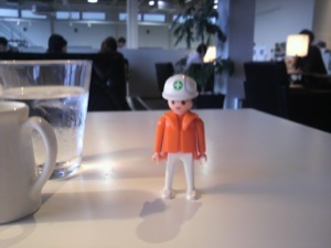 カフェで、テーブルの上に店員さんがさりげなく置いていくマスコット人形これが「お勘定書き」の代わりでこれをレジに持って行ってお支払い。大阪店でも同じシステムで何となくユーモアと愛嬌が有って、いい感じです。私は勝手に「レジ坊」と名ずけました。