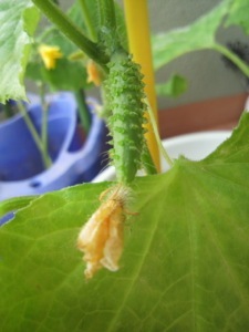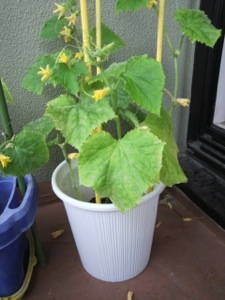 我家のミニミニ ベランダ菜園ではキュウリの赤ちゃんが