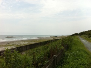 久しぶりに行ってみて気づいたのは、まず、沖に消波ブロックが積まれた離岸堤でした。住んでいた当時から言われていた、砂丘の浸食への対策のようです。